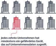 unter 10 Geräten, die auf Unternehmensdaten zugreifen, im statistischen Mittel immer wenigstens eines ist, das nicht den betrieblichen und rechtlichen Vorgaben entspricht.