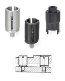 Einfach in der Anwendung: Zunächst wird für die Aufnahme der Nivellierschraube ein entsprechendes Durchgangsgewinde in das zu justierende Anlagenteil geschnitten, ebenso erhält die Auflagefläche darunter eine Gewindebohrung für die fixierende Zylinderschraube. Mittels des Montagewerkzeuges GN 355.1, das per Rändel oder Sechskant angetrieben werden kann, wird zunächst die Nivellierschraube eingeschraubt und dann justiert. Während des Justierens, praktisch im gleichen Arbeitsgang, zieht man mit einem Steck- oder Winkelschlüssel die Innensechskantschraube an. Dies ist möglich, weil das Montagewerkzeug über eine zentrische Durchgangsbohrung verfügt. Das Anziehen bewirkt, dass sich die Nivellierschraube mittels Konus über die darunter liegende Kugelscheibe spreizt, wodurch ein sicheres Verspannen in den Flanken des Aufnahmegewindes erreicht wird.