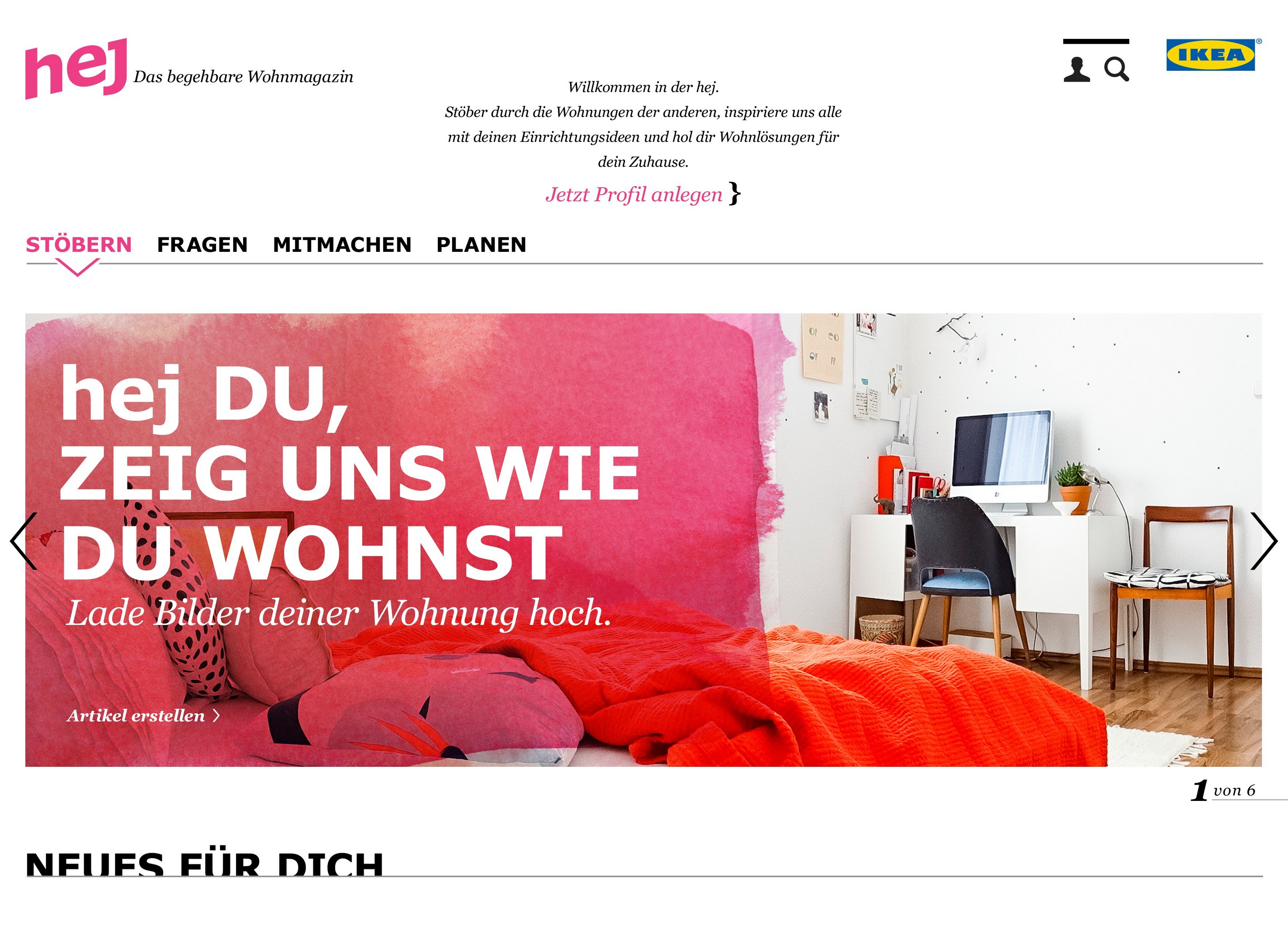Mit hej.de entwickelte Razorfish die erste Social Influencer Plattform, der ein nahtloser Übergang von inspirierendem Design Content zu Social Commerce gelingt. Seite an Seite veröffentlichen hier Fans und IKEA Wohnexperten ihre Gestaltungsideen. Über die Panoramafunktion ihrer Smartphones können Nutzer 360 Grad Ansichten von ihrem Zuhause hochladen und die IKEA Produkte darin markieren. Inspirationen aus dem täglichen Leben mit direktem Link zum IKEA eCommerce-Portal.