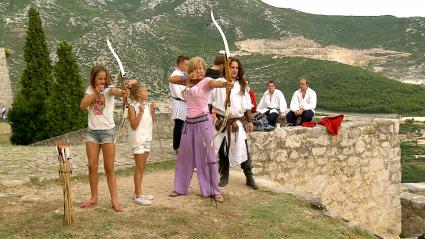 Möglichkeit, mit Pfeil und Bogen zu schießen. Wer von ihnen wohl ins