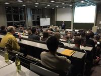Ein inspirierender Bau aus Laubholz Am dritten Abend in der Hochschule Augsburg wurde es international: Prof. Dr. Andrea Frangi von der Eidgenössischen Technischen Hochschule (ETH) Zürich war angereist, um das ?ETH House of Natural Resources? vorzustellen. Das ETH Forschungslabor ist ein Leuchtturmprojekt für das Bauen mit Laubholz. Die Tragstruktur besteht aus einem vorgespannten Holzrahmen aus Esche und zeichnet sich durch einen hohen Vorfertigungsgrad und zeitsparendes Zusammenfügen auf der Baustelle aus. Beim Bau kamen zudem erstmals neuartige Holz-Beton-Verbunddecken mit Furnierschichtholzplatten aus Buche zum Einsatz. Insgesamt ist der Bau selbst ein Forschungsprojekt, das auch in Zukunft interessante Ergebnisse für das Bauen mit Laubholz liefern wird.