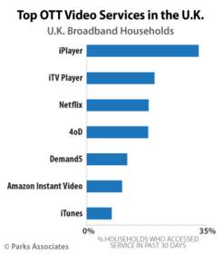 (firmenpresse) - (Mynewsdesk) DALLAS, TX -- (Marketwired) -- 12/11/15 -- Jüngste Untersuchungen von Parks Associates zeigen, dass 18% der britischen Breitband-Haushalte in den letzten 30 Tagen den kostenpflichtigen Streaming-Dienst Netflix genutzt haben. In demselben Zeitraum nutzten 20% dieser Haushalte den kostenlosen iTV Player und 33% den kostenlosen iPlayer, um Video-Inhalte per Streaming zu empfangen. Insgesamt haben 58% der britischen Haushalte mit Breitbandanschluss in den letzten 30 Tagen einen Dienst oder Player für Video-Streaming genutzt.