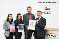 (PresseBox) - Die STILL-Personalanzeige ?Du bist spielentscheidend!? ist im studentischen Hochschulmagazin audimax Wi.Wi., Ausgabe 06/2015, unter 802 Befragten zum audimax Leserliebling erkoren wurden. Am gestrigen Dienstag konnten Marc Dechmann, Leiter STILL Personalentwicklung und sein Team die Urkunde als Leserliebling im eigenen Hause entgegennehmen. Überreicht wurde sie im Namen der audimax Leserinnen & Leser von Oliver Bialas, Herausgeber des Magazins. ?Die Personalanzeige ist mit 31,3 % der abgegebenen Stimmen zum schönsten, auffälligsten, originellsten und interessantesten Anzeigenmotiv in der Ausgabe gewählt worden?, so die Redaktion des Hochschulmagazins audimax Wi.Wi..