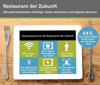 "Restaurant der Zukunft: Gäste wünschen sich digitale Services / Eine Bookatable-Umfrage zeigt: Gäste freuen sich über zusätzliche Services wie WLAN oder digitale Speise-Informationen (FOTO)"
