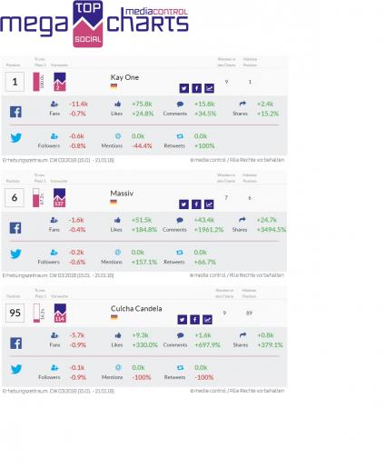 Die brandneuen mega Social Charts (Erhebungszeitraum: 15.01. -