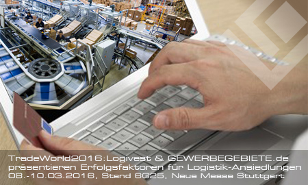 (firmenpresse) - Auf der TradeWorld, der Plattform für moderne Prozesse in Handel und E-Commerce, präsentieren LOGIVEST und GEWERBEGEBIETE.de die wichtigsten Faktoren für eine erfolgreiche Logistikimmobilien- und Logistikstandortstrategie. Unternehmen aus E-Commerce und Handel erfahren, wie sie geeignete Gewerbegebiete und Logistikimmobilien für ihre Logistikprozesse identifizieren. Interessenten, die im Rahmen ihrer Investitionsentscheidungen nach Lösungsansätzen suchen, finden vom 08. - 10. März in Stuttgart am Stand von Logivest und GEWERBEGEBIETE (Stand 6G25) Antworten und können die Plattform GEWERBEGEBIETE kennenlernen und sich ihre Vorzüge erläutern lassen. Am Mittwoch, den 09. März 2016 um 12:30 Uhr präsentiert Logivest auf dem Forum Innovation / Forum T (Halle 6) die fünf wichtigsten Erfolgsfaktoren für eine erfolgreiche Logistikimmobilien- und -standortstrategie.