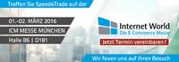 (PresseBox) - Bereits zum 20. Mal öffnet die ?Internet World? ihre Tore. Die eCommerce Messe versammelt vom 1.-2. März 2016 auf dem Messegelände in München die geballte Kompetenz des Online-Handels. Speed4Trade präsentiert sich und die weltweit erfolgreiche Middleware emMida dort mit einem größeren Stand und Team in Messehalle B6, Stand D181.