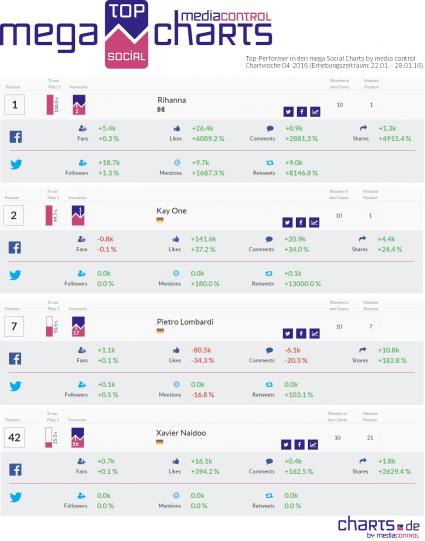 Nationaler Facebook + Twitter-Erfolg ist messbar: Rihanna und Kay One sind Top-Performer in Deutschland im Netz (FOTO)