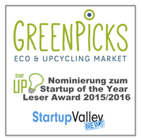Große Ehre für Greenpicks! Der Online-Marktplatz für nachhaltige Produkte Greenpicks – Eco & Upcycling Market, ist für den Startup of the Year Leser Award 2015/2016 nominiert.