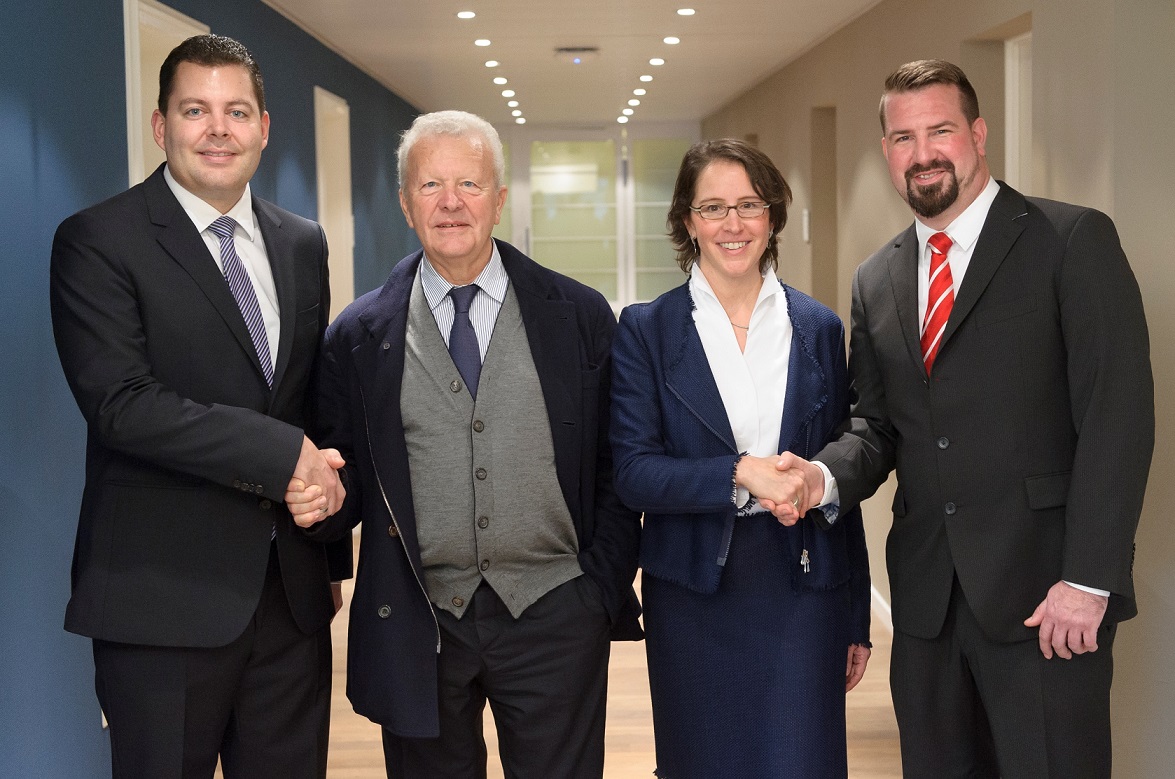 v.l.n.r.: Andreas Rabe (Gründer CAVALLO Personalmanagement GmbH) Daniel Augereau (Präsident der SYNERGIE-Gruppe), Nicole Munk (Geschäftsführerin SYNERGIE Personal Deutschland GmbH) und Matthias Gaul (Gründer CAVALLO Personalmanagement GmbH)