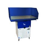 Die beim Arbeiten entstehende rauch- und staubhaltige Luft wird direkt durch das Lochblech der Auflagefläche abgesaugt und in die Filteranlage geleitet. Das fünfstufige Filtersystem (Stavo, Grobfilter, Vorfilter, Aktivkohlefilter und Hauptfilter) entfernt gesundheitsgefährdende Rauch- und Staubpartikel zuverlässig. Anschließend führt es die gereinigte Luft in den Arbeitsbereich zurück.
