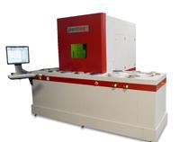 Einzelne Aufträge können zwischendurch auch durch die großzügige und automatisch öffnende Fronttüre manuell gefertigt werden. Der Durchmesser der Werkstücke kann hier bis zu großzügigen 750mm betragen. Der ausziehbare Tisch erleichtert das Auflegen der Werkstücke. Ein Positionierlaser zeigt eine Vorschau der Markierung und ermöglicht damit ein präzises Ausrichten. Aufnahmevorrichtungen oder Anschläge können daher entfallen.