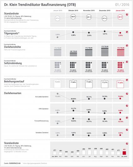 Dr. Klein Trendindikator Baufinanzierung 01/2016: Seitwärtsbewegungen überall; Sondertilgung nutzen (FOTO)