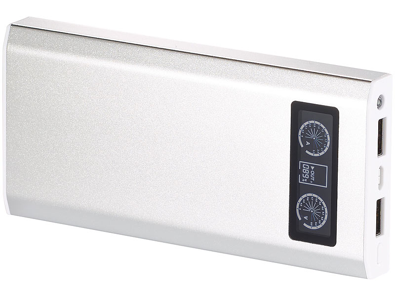 "revolt Powerbank mit 10.000 mAh und LCD-Display im Aluminiumgehäuse"