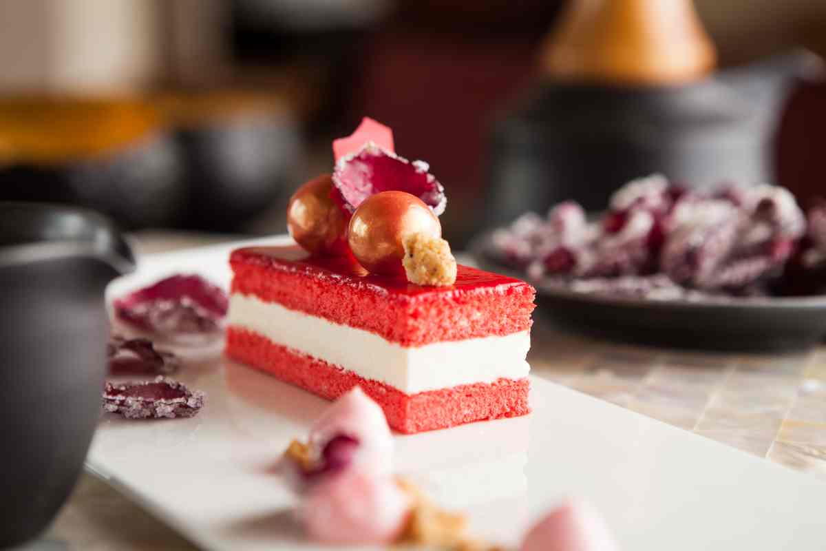 Auf der kulinarischen Seite kommt die Königin aller Blumen natürlich auch zum Einsatz. Der Barkeeper des The Chedi Muscat hat sich besonderen Cocktail einfallen lassen: "Rose Blush". Der Cocktal besteht aus Rosensirup, Cranberrysaft, Pfirsichpüree, Limettensaft sowie einem Schuss Wodka. Für Naschkatzen gibt es ein exquisites "Rosen Delight" Dessert, das im The Restaurant serviert wird und aus Rosenbiskuit mit Honigschaum und Rosencreme sowie einem Haselnuss Crumble besteht. Zusätzlich gibt es mit dem "Jabal Akhdar Rose & Vanilla Macaroon" den "Signature Macaroon of the Month".