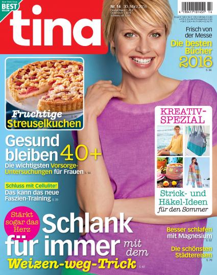 Die neue tina-Ausgabe 14/2016 ist ab dem 30. März im Handel