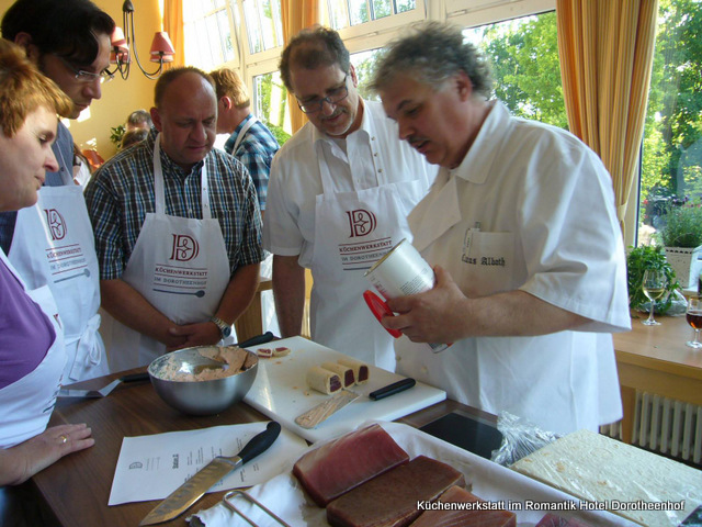 Unter dem Motto "Kochen für alle" bietet das Wellnesshotel Weimar in seiner Küchenwerkstatt alles rund um das Thema Kochen und Genuss. Unter der Leitung von Starkoch Claus Alboth gibt es jedoch nicht nur Kochkurse für alle, die gerne kochen und genauso gerne schlemmen, sondern auch Küchenpartys und Küchenschlachten. Dieses vielfältige Angebot ist ideal für Tagungen und für Teams, die noch enger zusammenarbeiten möchten, auch im Freundeskreis macht ein Kochkurs im Wellnesshotel Dorotheenhof besonders viel Spaß.