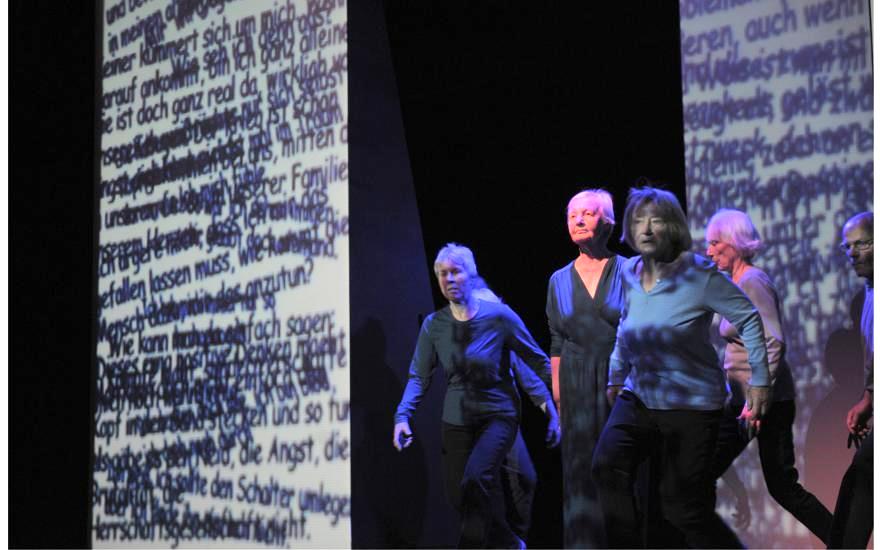 Eine Tanzperformance des My Way Ensembles - Tanzkompanie von 16 Tänzer_innen im Alter zwischen 65 bis 87 Jahren