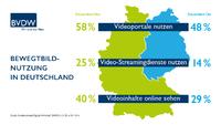 (PresseBox) - Online-Video-Portale und -Streamingdienste erfreuen sich zunehmend großer Beliebtheit ? in Westdeutschland jedoch deutlich stärker als in den neuen Bundesländern. Auch Alter und Einkommen sind entscheidende Faktoren. Das zeigt eine aktuelle online-repräsentative Umfrage von TNS Infratest im Auftrag des Bundesverbands Digitale Wirtschaft (BVDW) e.V.