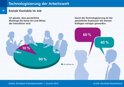 Technologisierung im Job: Soziale Kontakte leiden / Randstad Arbeitsbarometer Q1 2016 (FOTO)