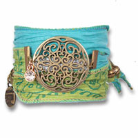 Aus prächtigen, indische Vintage-Saris entstehen in Handarbeit, in der Werkstatt in Spanien Armbänder, Ketten und zauberhafte Ohrringe. Mit den mystischen Symbolen wie dem OM-Zeichen, buddhistischen Mantras und Buddhas trägt man den Yoga-Spirit immer bei sich.