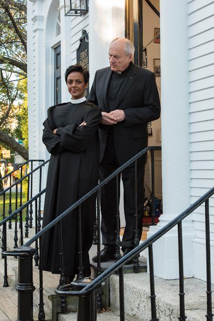Gefängnispfarrerin, auf der anderen ein alternder, engstirniger