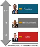 (PresseBox) - Für den Fortbestand eines Unternehmens sind zufriedene Kunden entscheidend. Denn Zufriedenheit ist das wichtigste Instrument zur Kundenbindung. Wir empfehlen daher bei Untersuchungen zur Kundenzufriedenheit eine Kombination mit der Net Promotor-Score-Methode. Die Grafik zeigt, wie die Skalen im Net Promotor Score gebildet werden und somit die Kunden in verschiedene Loyalitätsklassen eingeteilt werden können (Promotoren, passiv Zufriedene und Kritiker).