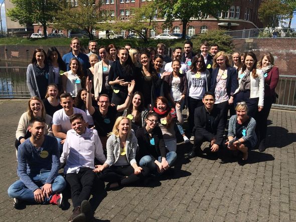 Bildunterschrift: Stefanie Holtz (unten rechts) mit den Azubis auf dem AccorHotels Orientation Day 2016 im Mercure Hamburg City. (Copyright: Roland Trescher)