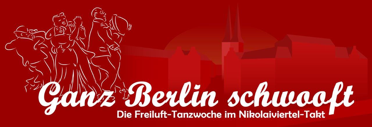 Ganz Berlin schwooft! Die Freiluft- Tanzwoche im Nikolaiviertel-Takt bietet seinen Besuchern geselliges und unterhaltsames Vergnügen in der romantischen Umgebung des Nikolaiviertels, Berlins historischer Mitte. Der Eintritt ist frei.