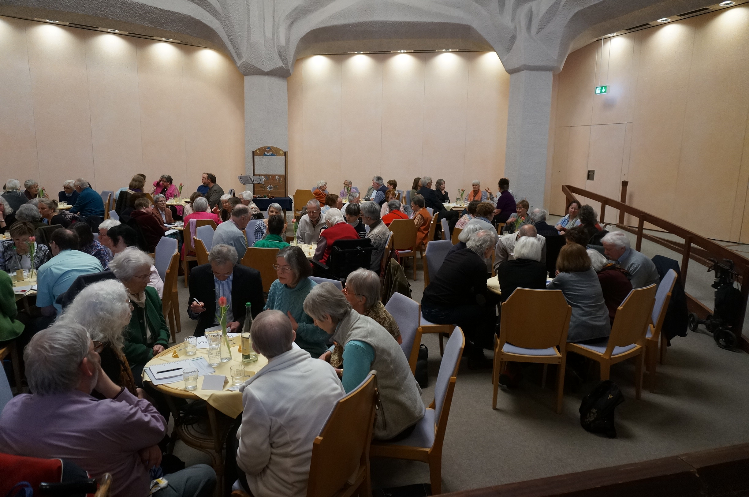 Langweilig wurde es dabei nicht, auch dank der beiden Moderatoren Beatrice und Matthias Schenk, die im Schloss Freudenberg, Wiesbaden, tätig sind. Die beiden verwiesen mit Repliken auf Goethes Faust etwa auf die Vergeblichkeit intellektuellen Wissens, das für sich allein nicht zur Lebensbewältigung ausreicht. ?Da steh ich nun, ich armer Tor // Und bin so klug als wie zuvor.?Es müssen andere Qualitäten dazu kommen, damit während Lebenskrisen innerlich Zuversicht und Lebensmut wachsen können. Wie das gelingen kann, darüber entspann sich an den Tischen ein Austausch, der gegen Ende zeigte, dass sich in den Gesprächskreisen eine Atmosphäre von Offenheit und Vertrauen gebildete hatte. Das heißt, es war gelungen, über persönliche Krisen zu sprechen.