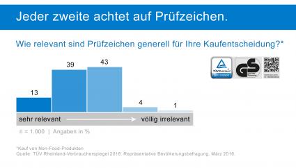 Verbraucher: Jeder zweite achtet beim Einkauf auf Prüfzeichen / TÜV Rheinland-Verbraucherspiegel 2016 zum Kauf von Non-Food-Artikeln / www.tuv.com/verbraucherspiegel (FOTO)