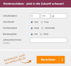 (firmenpresse) - Bald wird es immer mehr Rentner und somit auch mehr Leistungsempfänger geben. Daher stellt sich die Frage: „Reicht mir meine Rente?“. Berechnen und schätzen Sie Ihre zukünftige Rente ganz einfach mit dem folgenden Formular.