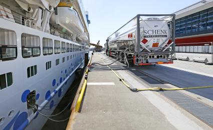 Motors von AIDAprima erfolgt direkt über einen LNG-Truck am
