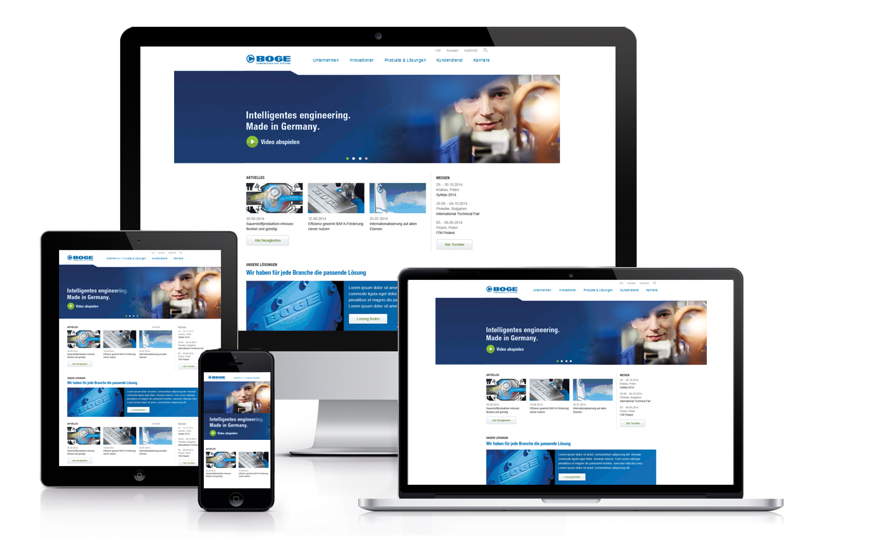 (firmenpresse) - Mit zielgruppenspezifischen Angeboten, neuester Technik, intuitivem Zugang zu Informationen sowie der Einbindung von Social Media Kanälen entspricht die neue BOGE Website den Bedürfnissen moderner Kommunikation. Das frische und moderne Design bietet eine intuitive Navigation mit hoher Benutzerfreundlichkeit. Zudem ist die Website für alle gängigen Endgeräte optimiert, das heißt im Responsive Design angelegt. Ob per Computer, Smartphone oder Tablet - der Auftritt erscheint immer im optimalen Format.