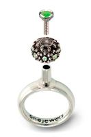Ein simples Schraubsystem mit einem farbigen Schmuckstein befestigt das Bead auf dem Ringkopf.