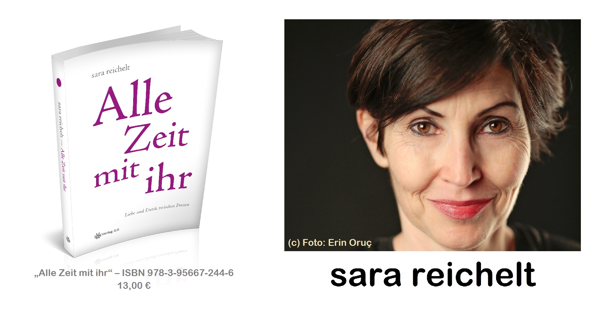 Das Buch "Alle Zeit mit ihr - Liebe und Erotik zwischen Frauen" (https://buch-ist-mehr.de/PWA/buecher/alle-zeit-mit-ihr) ist am 10. Juni 2016 im Verlag 3.0 erschienen. Es ist im Buchhandel offline/online und außerdem im Verlag Shop (http://verlag-shop.com/Alle-Zeit-mit-ihr) erhältlich.