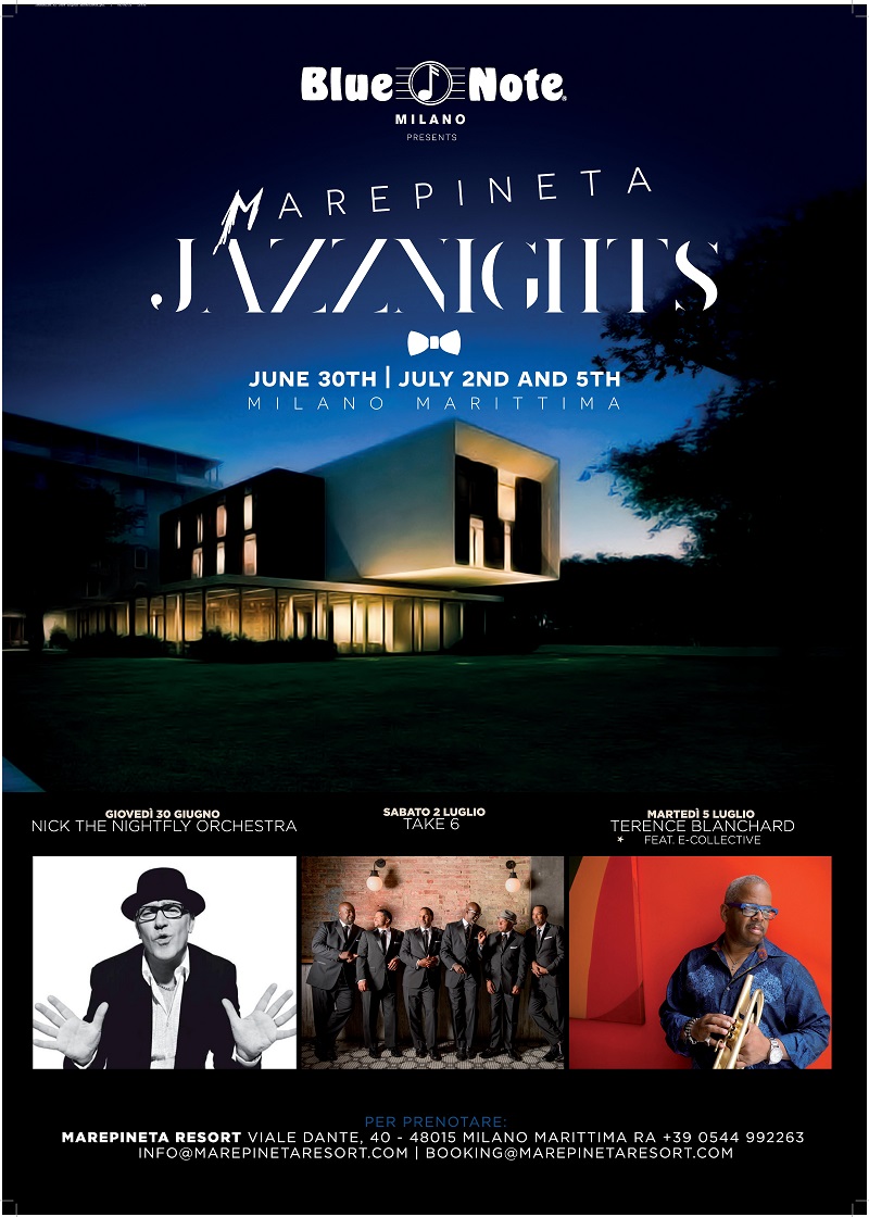(firmenpresse) - Das MarePineta Resort in Milano Marittima präsentiert in Zusammenarbeit mit dem historischen Jazz Club "Blue Note" aus Mailand an drei Abenden die "MarePineta Jazz Nights". Zum ersten Mal geben sich internationale Jazzgrößen in der Emilia-Romagna die Ehre. Im Rahmen des Festivals findet am Pool des malerischen MarePineta Resorts ein exklusiv von Michelin-Sternechef Andrea Ribaldone kreiertes Galadinner statt.
