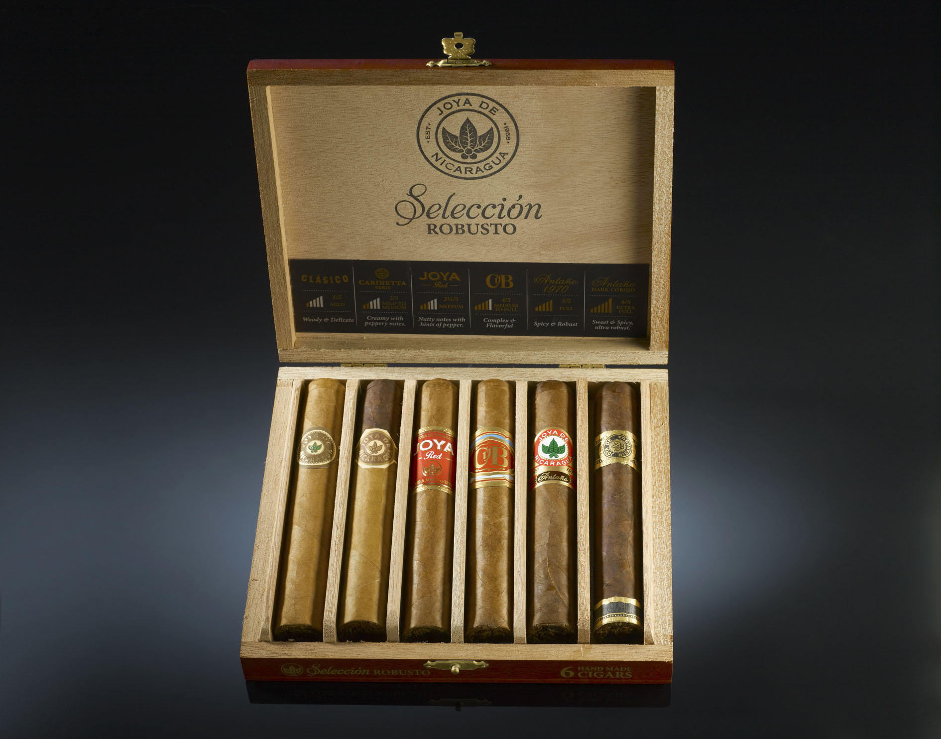 Im Sampler enthalten sind Robusto Cigarren der Serien Clásico und Joya Red, die bereits im deutschen Fachhandel erhältlich sind, und die neu zu entdeckenden Robustos der Serien Cabinetta, CyB, Antaoo 1970 und Antaoo Dark Corojo. Allen gemeinsam ist, dass traditionell vorwiegend nicaraguanische Tabake aus der fruchtbaren Region rund um Estelí von Hand verarbeitet wurden. Dies spiegelt auch die Philosophie und Authentizität des Unternehmens wieder. Die durch Vulkanerde angereicherten besonders fruchtbaren Böden und die perfekten klimatischen Bedingungen zeichnen die dort gewachsenen Tabake durch eine Aromenkomplexität aus, die im harmonischen Verhältnis zum erdig-robusten Geschmack steht.