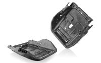 Mit dem MuCell®-Verfahren, bei dem Thermoplasten geschäumt werden, entwickelt Pöppelmann Lösungen, die Funktionen bei reduziertem Gewicht und gleichzeitiger Kostenkontrolle aufweisen. MuCell®-Bauteile können zudem mit Organoblechen kombiniert werden. Dabei handelt es sich um vorgefertigte Halbzeuge, bestehend aus in Polymer getränktem Endlosglasfaser-Gewebe. Auf diesen werden die Funktionselemente aus Thermoplasten direkt montiert. So lassen sich noch leichtere Bauweisen erreichen.