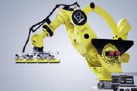 Um die immensen Teilegewichte bis zu 1.000 kg handhaben zu können, fiel die Wahl auf einen Fanuc Roboter der Serie M-2000iA. Durch eine softwaretechnische Optimierung ist die Traglast des Roboters auf beeindruckende 1.350 kg erweitert worden.