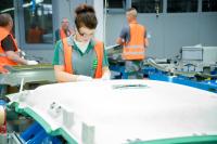 Auch das so genannte ?Multi-Order-Picking? wird durch Google Glass deutlich erleichtert, denn die Mitarbeiter können gleichzeitig Warenkörbe für mehrere Projekte zusammenstellen ? und das fehlerfrei. Sind die Warenkörbe gefüllt, werden sie über ein Förderband zu den Montagetischen transportiert. Dort werden die Rohhimmel mit den einzelnen Elementen zusammengebaut, ebenfalls unter Führung durch Google Glass. Die fertigen Formhimmel werden dann in die vorgesehenen Positionen innerhalb der bereitgestellten Sequenzgestelle eingehängt.