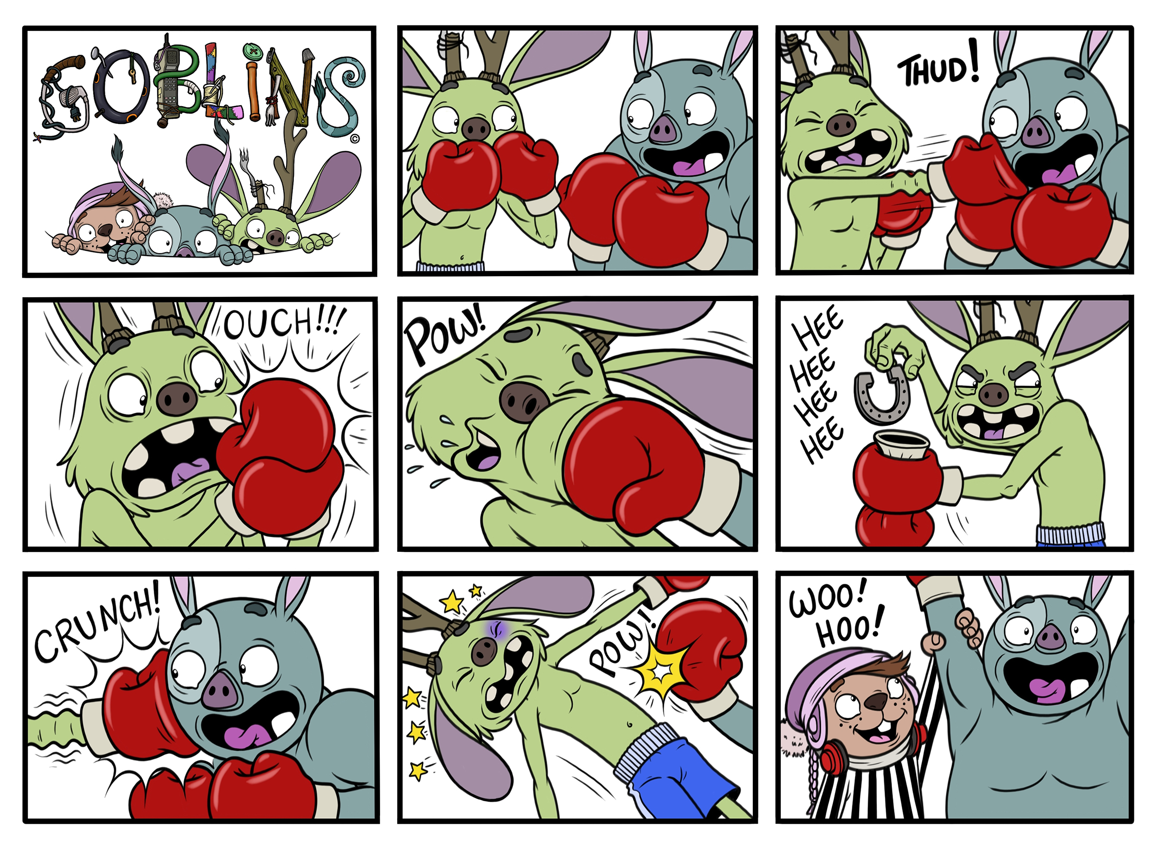 (firmenpresse) - (NL/4226566276) Bahn frei, hier kommen Peeko, Herbert und Earl! Wie bitte, wer sind die denn? Na, Goblins natürlich, was denn sonst? Und wie es für Goblins eben üblich ist, haben die drei nichts anderes im Sinn, als Streiche zu spielen, sich bei jeder Gelegenheit so dreckig wie möglich zu machen und ganz allgemein ein möglichst großes Chaos zu veranstalten. Doch eigentlich meinen es Peeko, Herbert und Earl ja gar nicht böse sie sind eben manchmal einfach nur ein bisschen zu neugierig und pfeifen auf alle Regeln (was normalerweise nach hinten losgeht, und zwar ordentlich). Das Schöne am Goblins-Universum ist: Es gibt nichts, was es nicht gibt die drei kleinen Chaoten sind immer für eine Überraschung gut. Und so kann kann vom Drachenkampf über Abenteuer im Aquarium bis hin zu Ausflügen ins Weltall so ziemlich alles passieren, was man sich irgendwie vorstellen kann. Die Serie lebt von ihrer grenzenlosen Fantasie, von ihren rundum sympathisch-kindlichen Charakteren und nicht zuletzt von ihrer handwerklichen Souveränität.