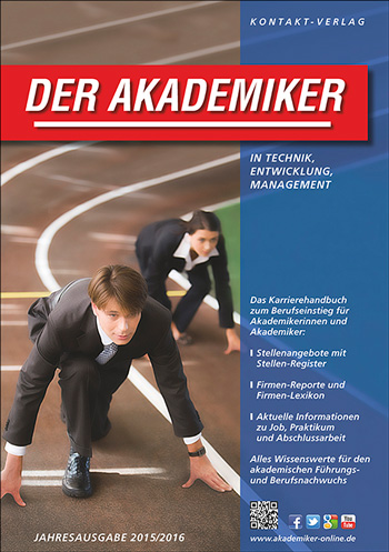 (firmenpresse) - Seit über 50 Jahren setzen deutsche Unternehmen bei der Rekrutierung von qualifiziertem Berufsnachwuchs auf das Karrierehandbuch zum Berufseinstieg DER AKADEMIKER aus dem Hause der Kontakt-Verlag GmbH. Das Jahrbuch mit Stellenanzeigen und bewerbungsrelevanten Unternehmensinformationen erscheint auflagenstark im Oktober mit 50.000 Exemplaren und 12-monatiger Vertriebsdauer sowie als E-Paper. DER AKADEMIKER wird kostenlos an Deutschlands Universitäten, Fachhochschulen und auf zahlreichen Hochschulkontaktmessen verteilt. Die Publikation richtet sich vor allem an die Zielgruppe der Ingenieure, Informatiker, Mathematiker, Natur-, Rechts- und Wirtschaftswissenschaftler.