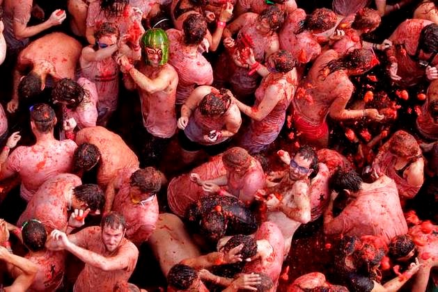 Eine Spanisch Sprachschule in Valencia bietet die letzten Plätze für eine Tomatenschlacht die den Spaniern niemand nachmacht.