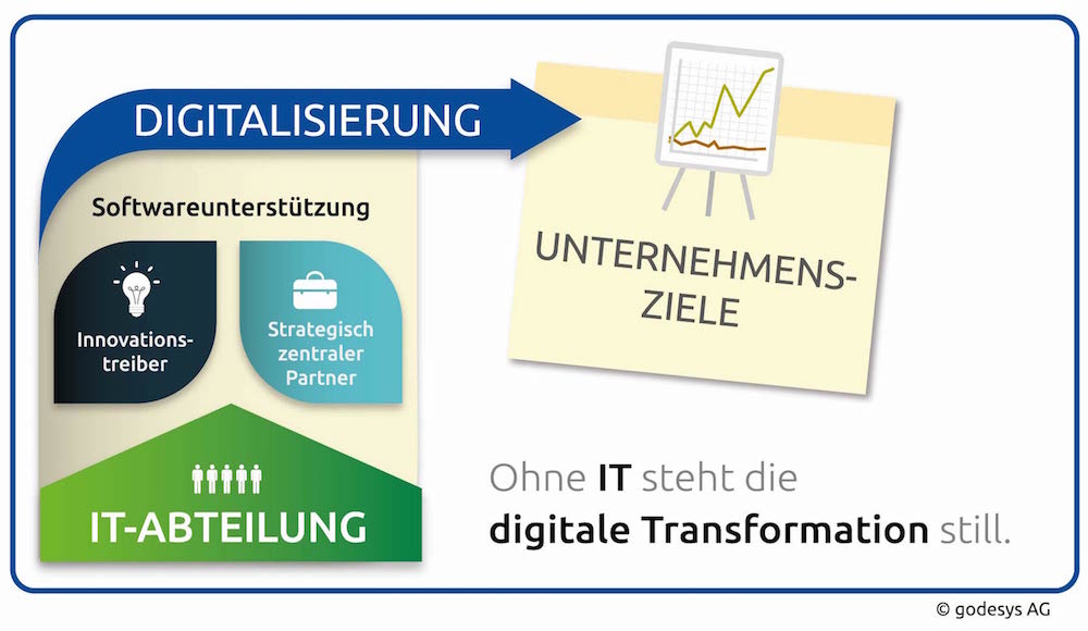 (firmenpresse) - Mainz, 12. Juli 2016 – Digitalisierung ist mehr als nur ein Trend: Unternehmen, die die voranschreitende Entwicklung ignorieren oder zu langsam agieren, geraten früher oder später gegenüber der Konkurrenz ins Hintertreffen. Die Geschäftsperformance hängt wesentlich von der Einstellung der Entscheider ab: Laut einer Studie von BPI Network glaubt nur jeder zweite Firmenlenker, dass die eigene IT-Abteilung in der Lage sei, die Digitalisierung aktiv mitzugestalten. Doch ohne zukunftsweisende Informationstechnologie und kompetentes IT-Personal lässt sich die digitale Transformation nicht bewältigen. Der Mainzer ERP-Experte godesys erläutert, was zu beachten ist und weshalb eine leistungsfähige IT-Abteilung eine entscheidende Rolle für den Geschäftserfolg moderner Unternehmen spielt.