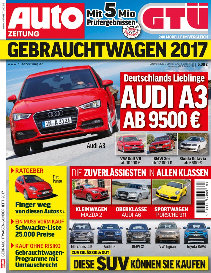 Das Sonderheft "Auto Zeitung Gebrauchtwagen 2017 mit GTÜ-Report" ist
