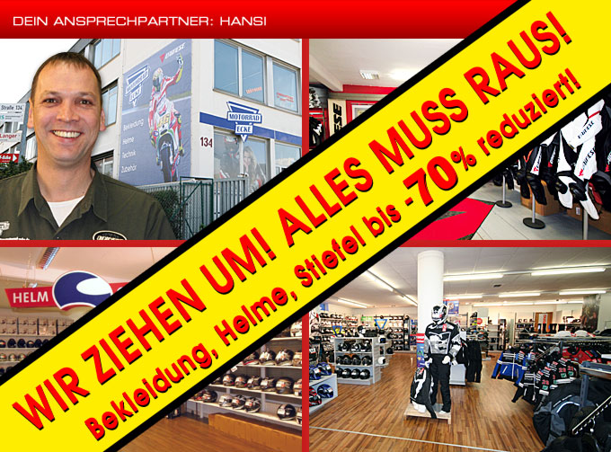 Wir ziehen um! Alles mußraus! Motorradbekleidung bis zu -70% reduziert!