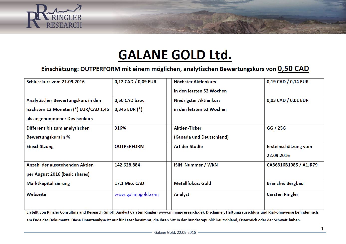 Ringler Research: Studie über Galane Gold LTd. veröffentlicht / Analytischer Bewertungskurs 0,50 CAD / 0,345 (+316% Kurspotenzial)