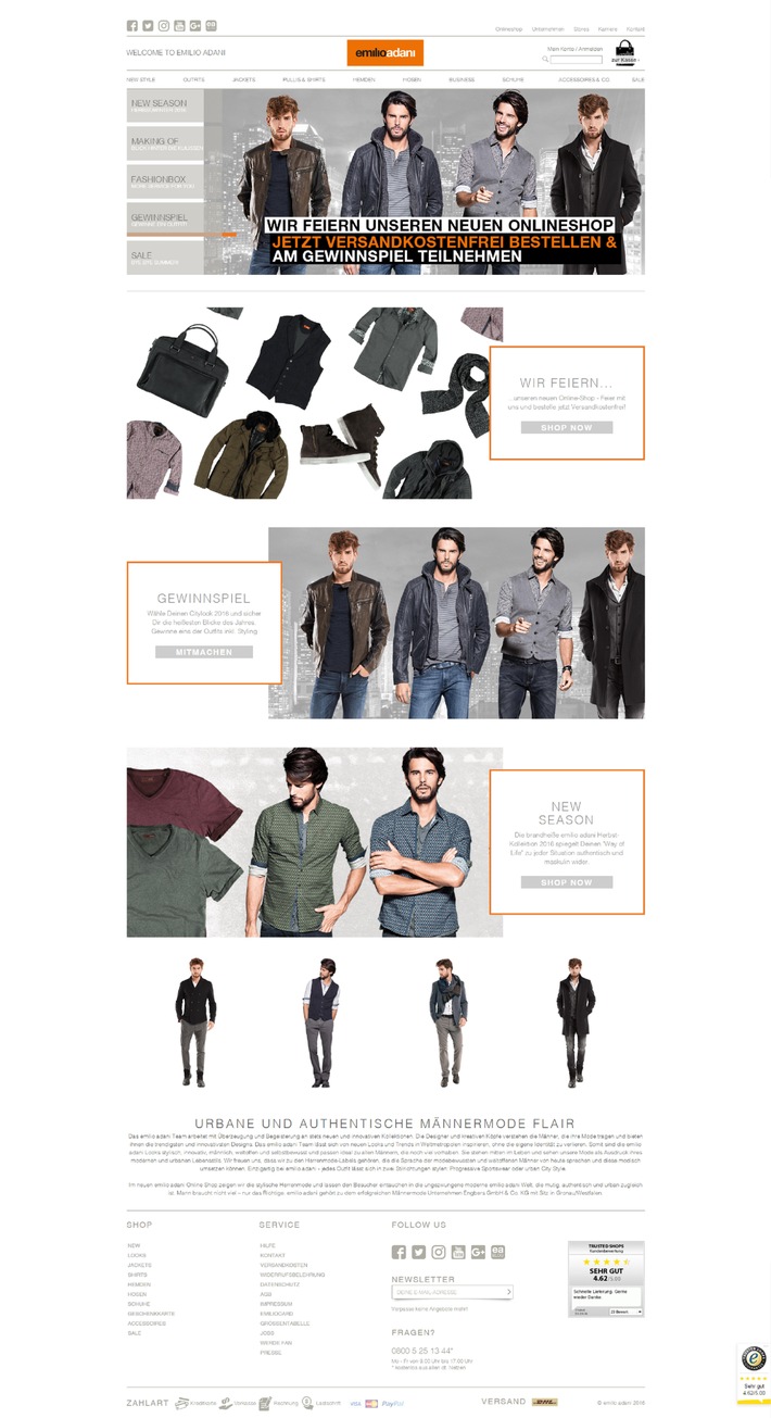neue emilio adani Online-Shop wurde technisch von dem eCommerce