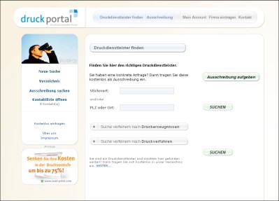 Im neuen Druckereiverzeichnis http://www.druckportal.info können Interessenten nach Druckerzeugnissen, Druckverfahren, Firmennamen und Standort Druckereien und Druckdienstleiter suchen und direkt Kontakt aufnehmen. Durch sinnvolle Funktionen wie die Merkliste ist eine gesammelte Angebotsanfrage und Kontaktaufnahme an mehrere Druckereien gleichzeitig möglich.